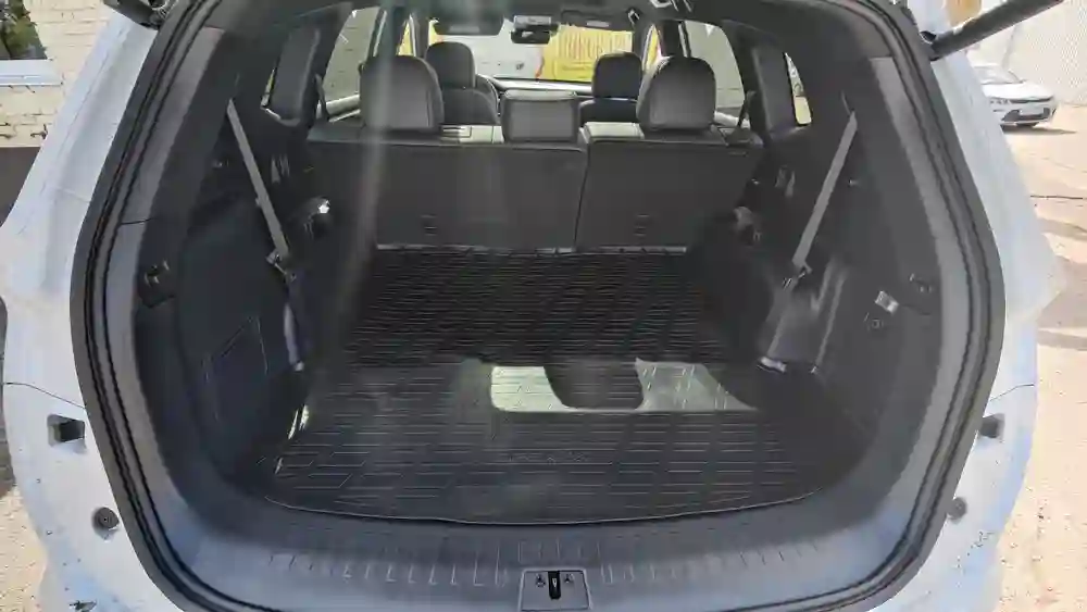 В багажник ведет дверь с электроприводом, откидывающаяся вверх. Акцентирую ваше внимание на линию ее разъема, активно заходящую на боковины кузова. Таким образом она максимально выведена из зоны разряжения, потому подсос в салон пыли и выхлопных газов даже в случае неплотного уплотнения если и будет, то минимальным. Теоретически он возможен, разве что через нижнюю горизонтальную щелку.