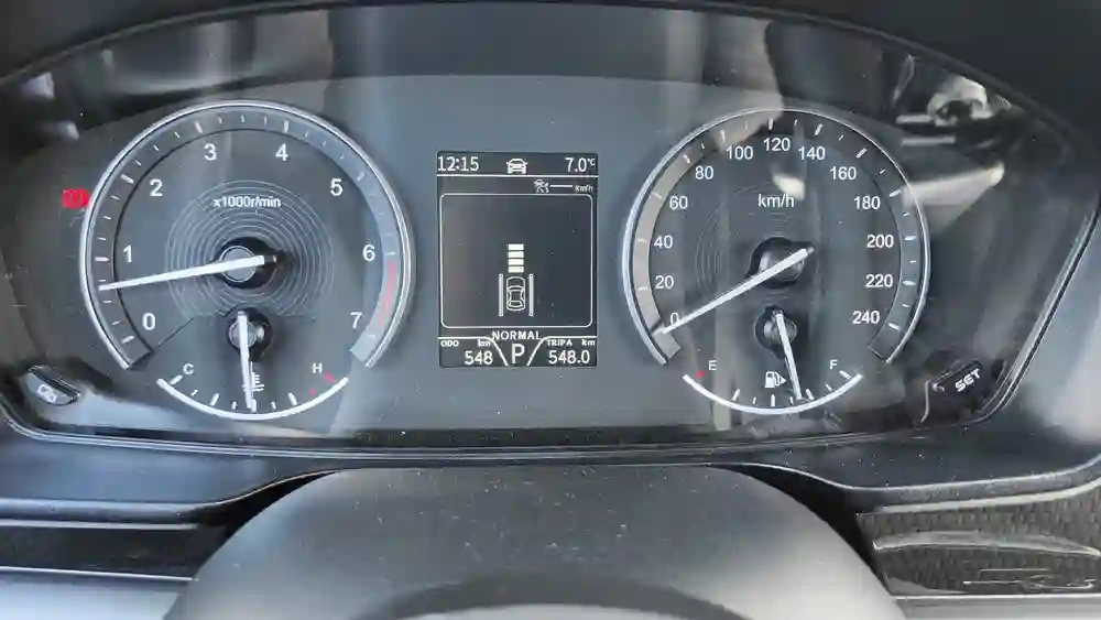 На высокой скорости сталкиваешься с удивительным эффектом, встречающимся далеко не на каждом автомобиле. Скорость машины «на глаз» определить невозможно. По ощущениям не более 80 км/ч, в салоне тихо, слышно лишь, как трутся об асфальт китайские шины Chao Yang SU 318 H/T да шипит воздух в воздуховодах системы вентиляции. Сдвинул взгляд на проекцию на лобовом стекле и обомлел – спидометр показывает почти 120!